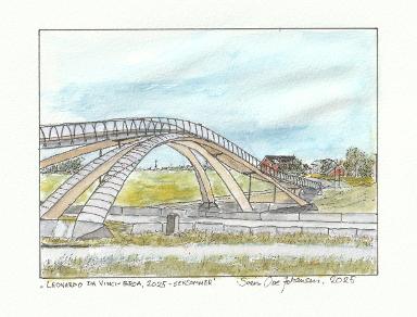 Tegningen er av vår lille lokale severdighet, Vebjørn Sands versjon av Leonardo da Vinci-brua.