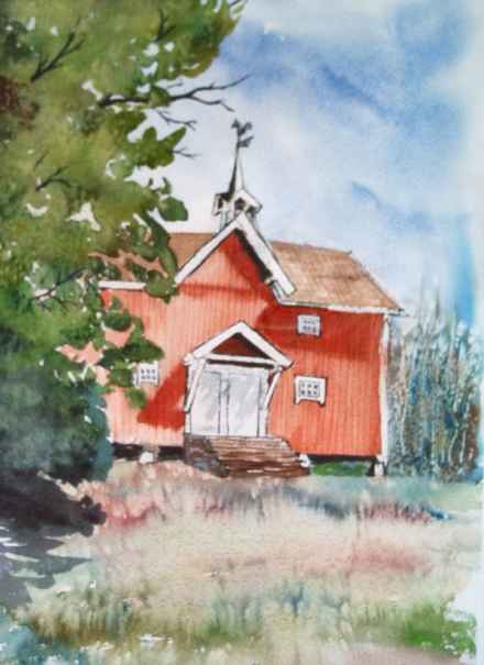 BARNDOMSHJEMMET MITT, FOSS, VED ASKIM, SVEINOVE JOHANSEN, AKVARELL/WATER COLOUR , 19©99