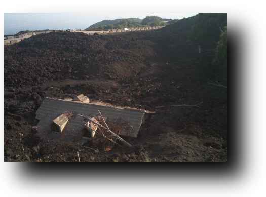 At Etna er en levende vulkan, fikk vi se med egne øyne. Hus og veier lå dypt under størknet lava. Det siste utbruddet var så seint som i 2003, og ødeleggelsene var fremdeles lett synlig. Vi gikk rundt et av kratrene på ca 2000 meters høyde og så ned i krateret som sist hadde utbrudd. Flere ganger så vi hvor tilfeldig lavaen følger terrenget. Noen steder var det grønne lunger, der lavaen ikke hadde dekket marken. To hus tett ved siden av hverandre, illustrerte dette ekstra godt.