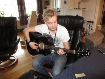 Også Gunnar kan spille gitar, særlig elsker han musikk av Kaizers Orkestra.