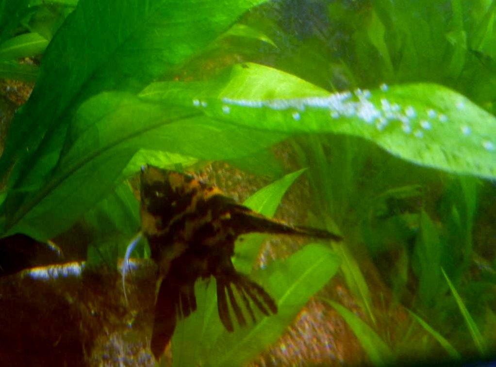 Her er det ene scalareparet i ferd med å legge egg på et blad fra en amazonassverdplante. (© Svein Ove Johansen, 2008)