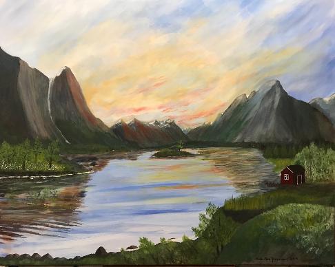 Ett av to bilder jeg har malt av hytta til familien til våre venner Hildegunn og Åsmund.
