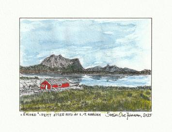 Min venn Kjells mor er født i Ballangen og har et nært forhold til vakre Efjord, så jeg laget en liten akvarell med motiv fra stedet jeg ville gi til ham som takk for et langt og godt vennskap.