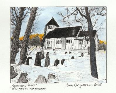Vår gode venn Nina jobber som prest i Rauland, og jeg laget dette bildet av Møsstrond kirke etter ett av hennes bilder.